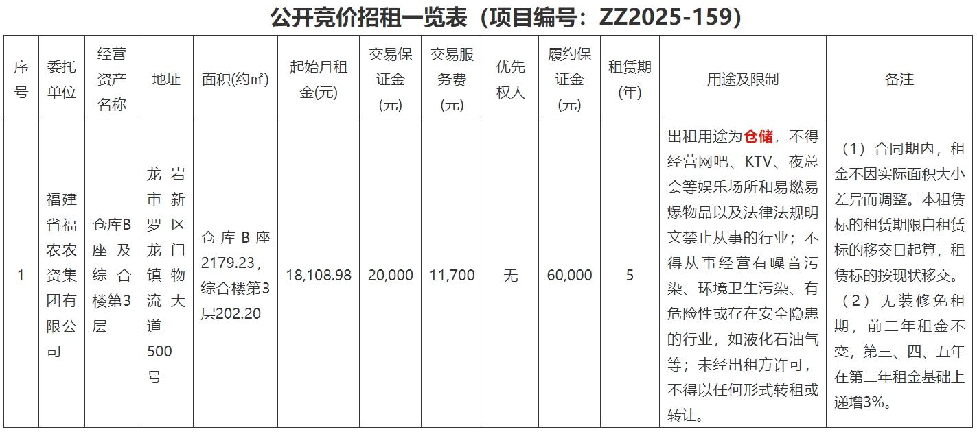開(kāi)戶行:廈門銀行股份有限公司龍巖分行,戶名:龍巖市產(chǎn)權(quán)交易中心有限公司,賬號(hào):以權(quán)益云交易平臺(tái)指定的賬號(hào)為準(zhǔn)(報(bào)名參加的競(jìng)租人與繳納交易保證金的名稱要一致)。